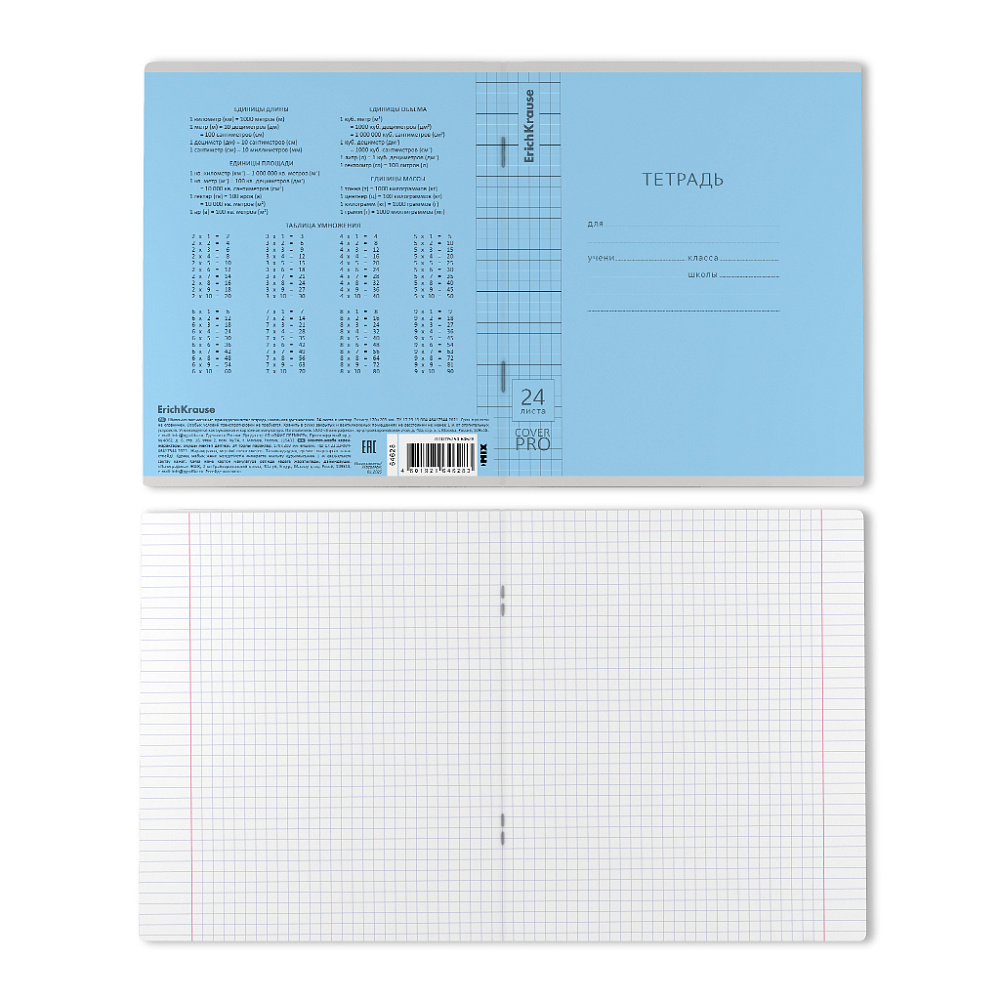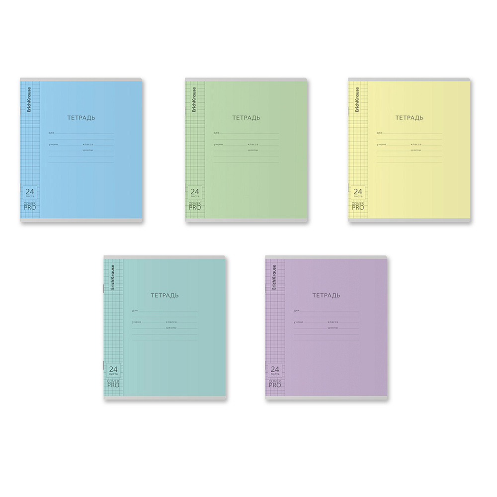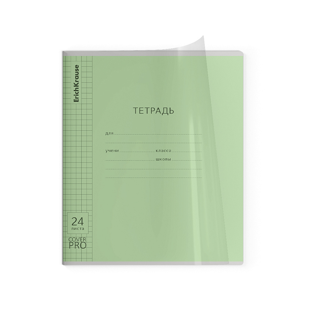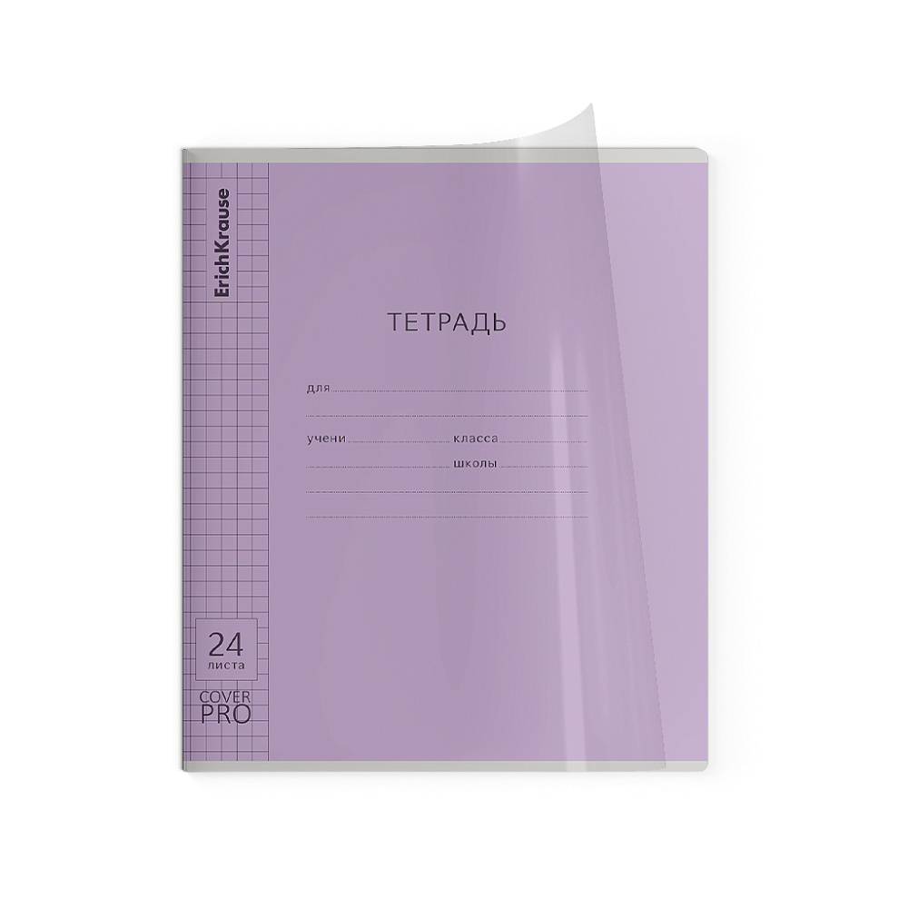 Тетрадь школьная ученическая с пластиковой обложкой на скобе ErichKrause Классика CoverPrо glossy, А5+, 24 л, клетка_MIX-PACK