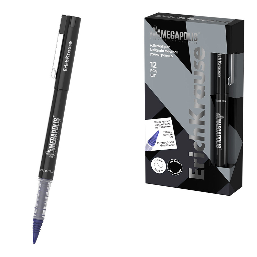 Ручка-роллер ErichKrause MEGAPOLIS® Stick 1.0, цвет чернил черный (в коробке по 12 шт.)