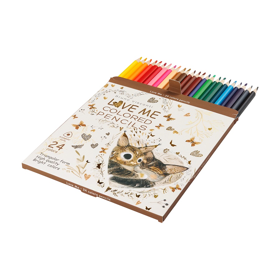 КАРАНДАШИ ЦВЕТНЫЕ "LOVE ME. КОТИКИ ПРИНОСЯТ СЧАСТЬЕ", 24 ЦВ.