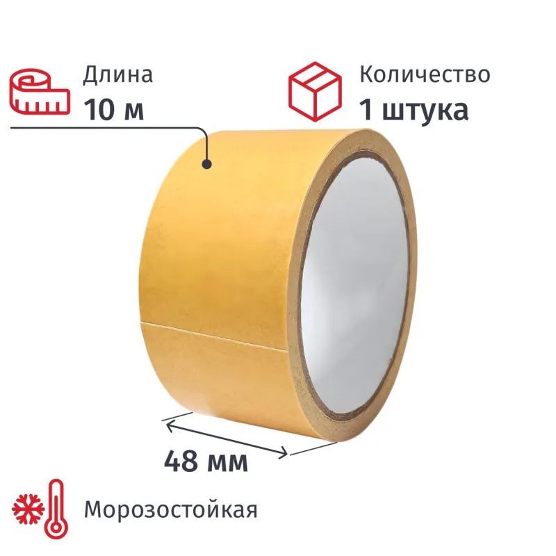 Клейкая двусторонняя монтажная лента. Клейкая лента предназначена для использования в офисе, дома, на производстве. Подходит для склеивания различных поверхностей. Цвет — белый полупрозрачный матовый. Материал основы — двуосноориентированный полипропилен. Клеевой слой — синтетический каучук. Длина — 10 м. Ширина — 48 мм. Рабочая температура: от 10 до 50 градусов. Толщина ленты — 83 мкм. Предел прочности при разрыве, N/см — 70.