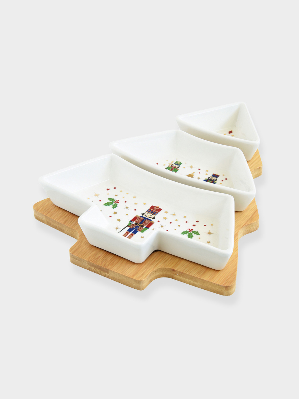 Набор для закуски (ёлочка): 3 блюда на подставке 25.5х21см "Щелкунчик" в подарочной упаковке.