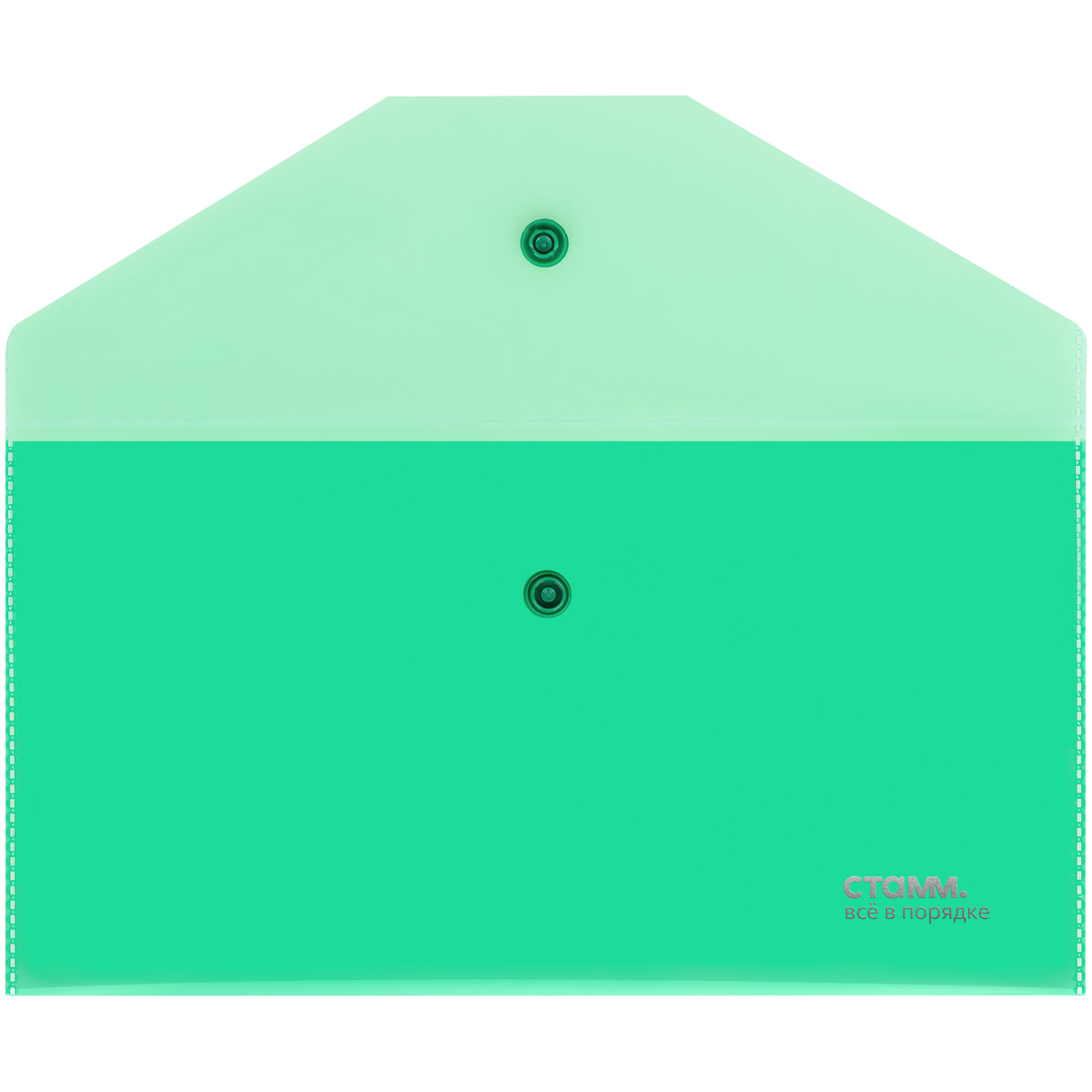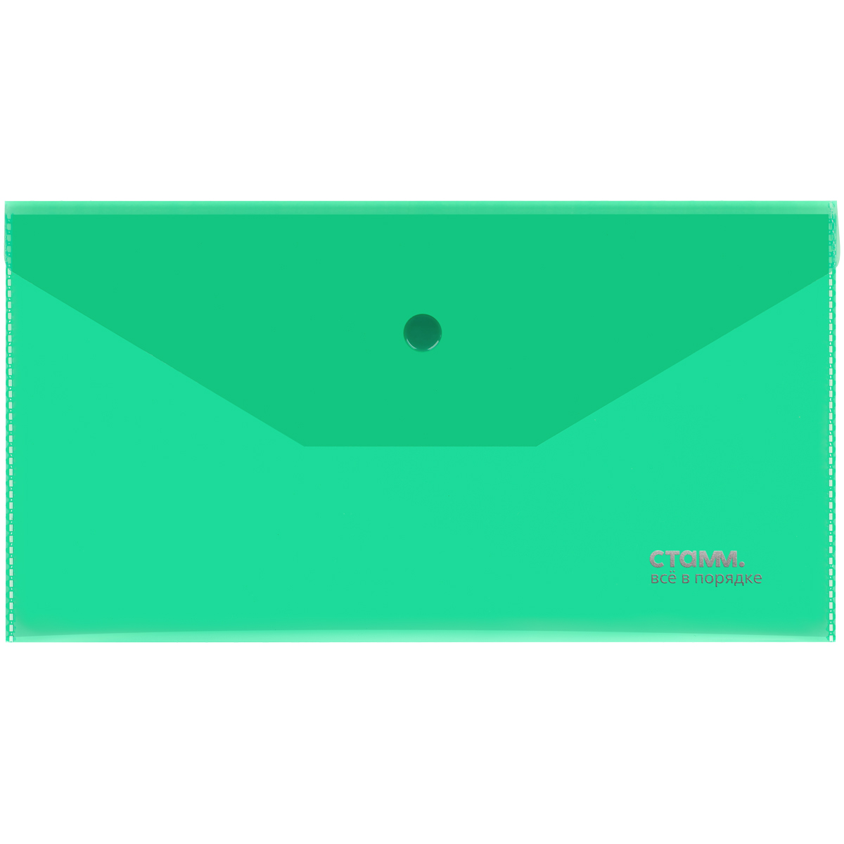 Папка–конверт на кнопке «СТАММ» формата С6 предназначена для хранения и транспортировки бумаг. Она изготовлена из качественного полипропилена толщиной 180 мкм. Размер изделия составляет 223*120 мм, ориентация – горизонтальная. Папка плотно закрывается клапаном на кнопку и надёжно защищает документы от влаги и пыли. Имеет глянцевую текстуру. Вместимость – до 100 листов. Цвет изделия – прозрачный зелёный.