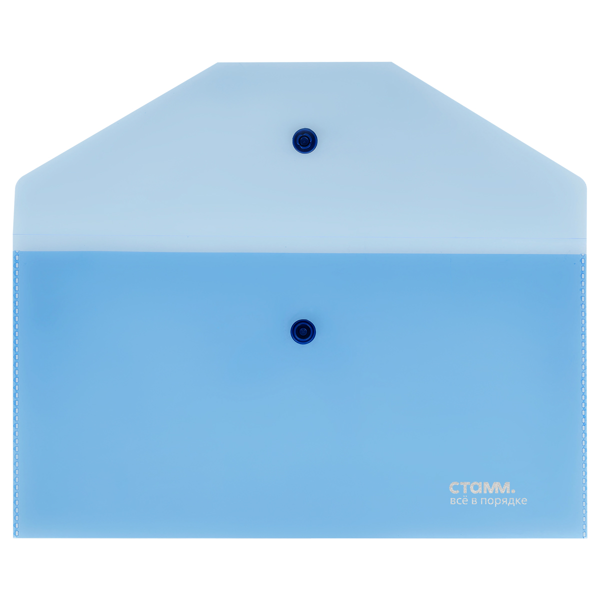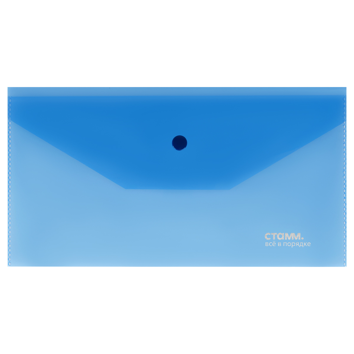 Папка-конверт на кнопке СТАММ С6, 180мкм, пластик, прозрачная, синяя