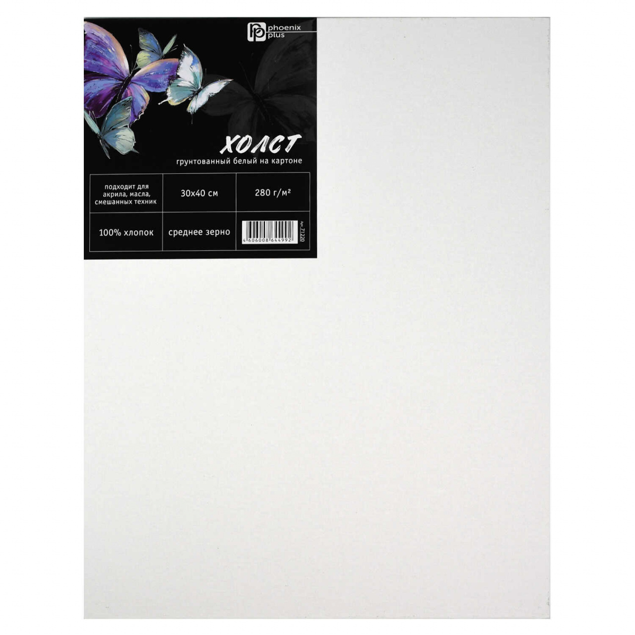 Холст художественный на картоне, белый, Феникс+ БАБОЧКИ (30х40 см, хлопок 100%, 280г/м2, зерно: среднее, форма: прямоугольная, грунтованный, для акрила, масла, смешанных техник, место для персонализации, ПЭТ-плёнка).