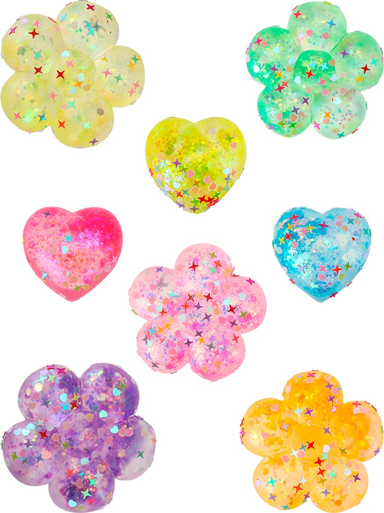 Антистресс-мялка "Цветочек" (4 цвета микс, 12 шт. в шоу-боксе, с блестками) кратно 12