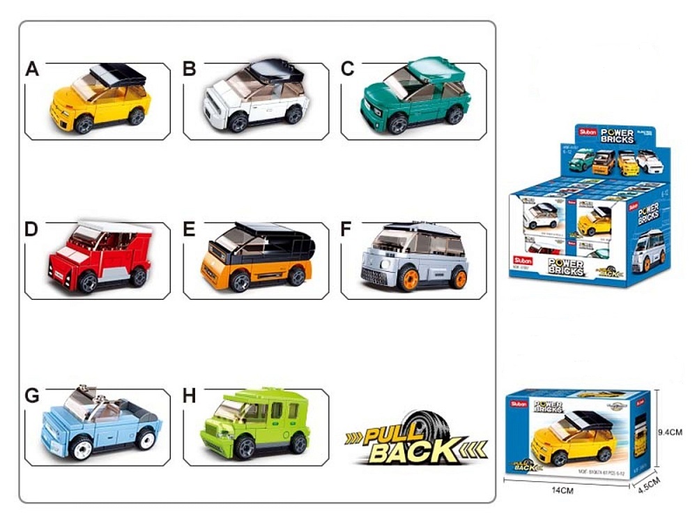Конструктор пласт.SLUBAN.Электромобиль(цвет-микс,16шт.в ш/б)(28,5X19,4X18,7)