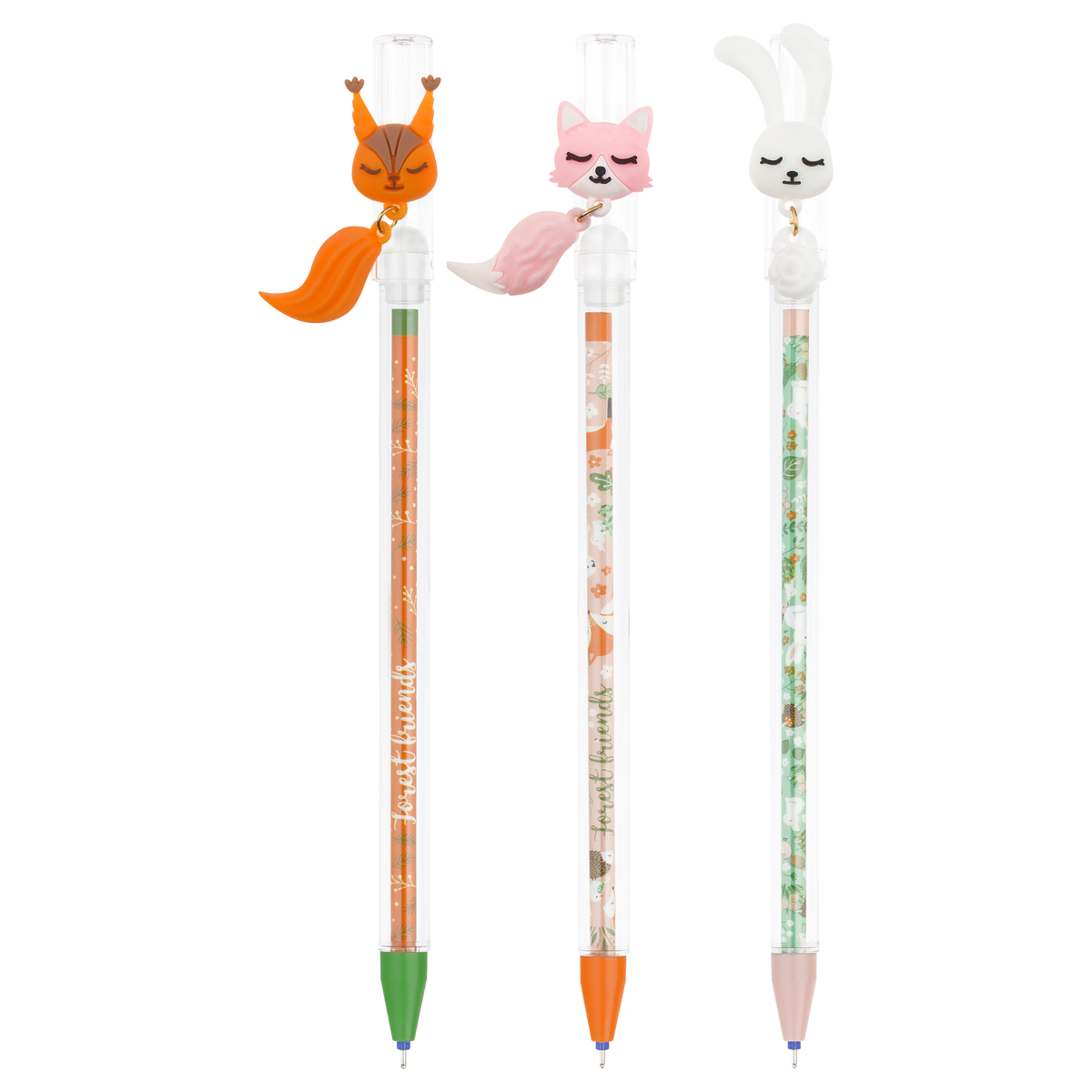 Ручка гелевая стираемая MESHU "Lovely animals" синяя, 0,5мм, корпус ассорти, с топпером