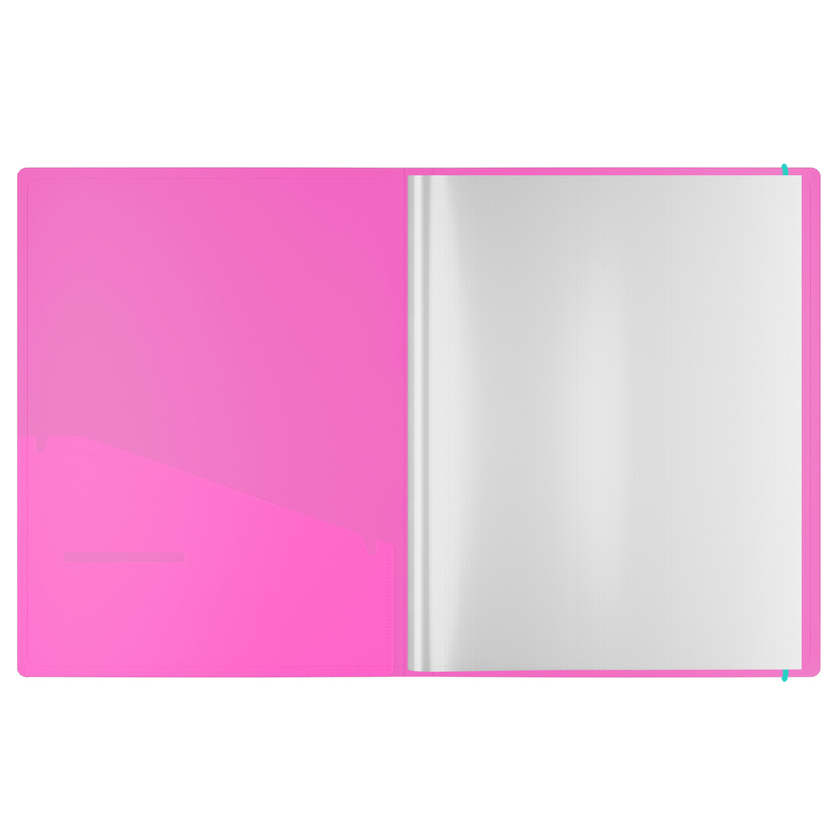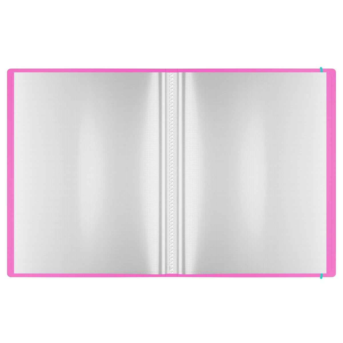 Папка изготовлена из высококачественного полипропилена с особой фактурой с эффектом soft-touch. Внутренняя сторона обложки оснащена плотным прозрачным карманом для удобного хранения мелочей: ручки, заметок, визиток, дисков, флешек и др. Папка выполнена в размере 310*230*17 мм. Папка имеет прозрачные фактурные листы-карманы увеличенной толщины 30 мкм, надёжно скреплённые сваркой. Вмещает до 100 бумажных листов. Индивидуальная упаковка в прозрачный пакет по форме. Поставляется в специальных шоу-боксах в качестве