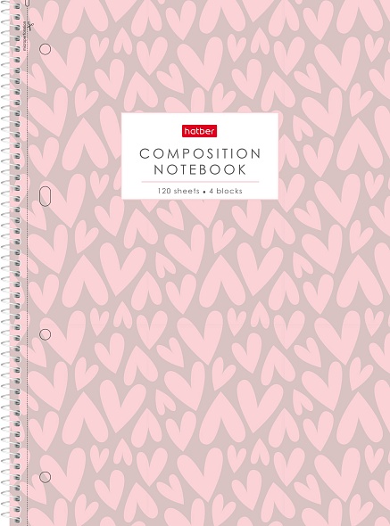 Тетрадь с твердой обложкой 120л А4ф на спирали 4 цв. разделителя Многоуров.перфорация ламинац.SOFT-TOUCH- LOVE IS....- в индив.упак.