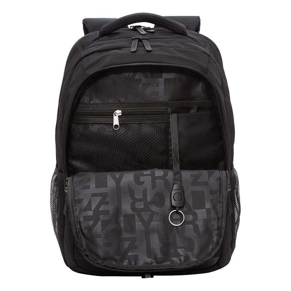 Рюкзак молодежный Grizzly RU-532-2 черный, 2 отд, карманы, анат.спинка, свет.элем, 31х42х22
