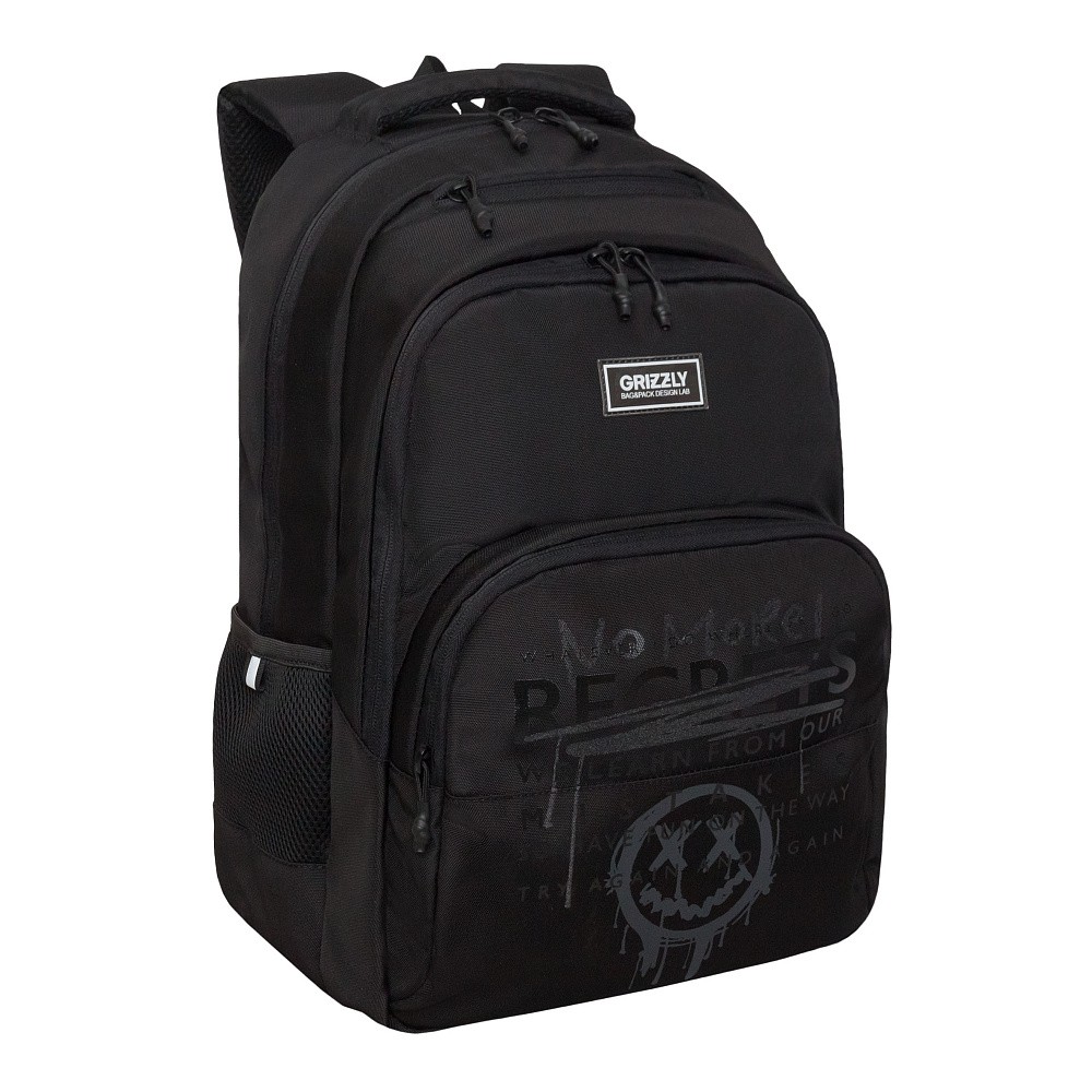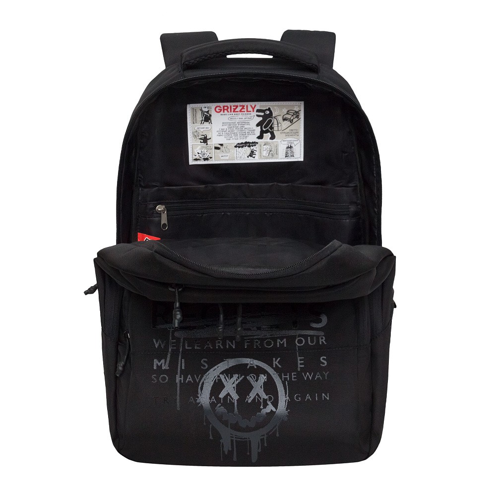 Рюкзак молодежный Grizzly RU-630-3 черный, 2 отд, карманы, анатом.спинка, свет.элементы, 32х45х23