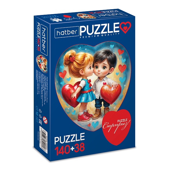 "Premium" ПАЗЛЫ для детей 140+38 элементов А4ф  "2 картинки в 1 коробке" Два сердца -Нежный возраст-  в Смарт-упаковке
