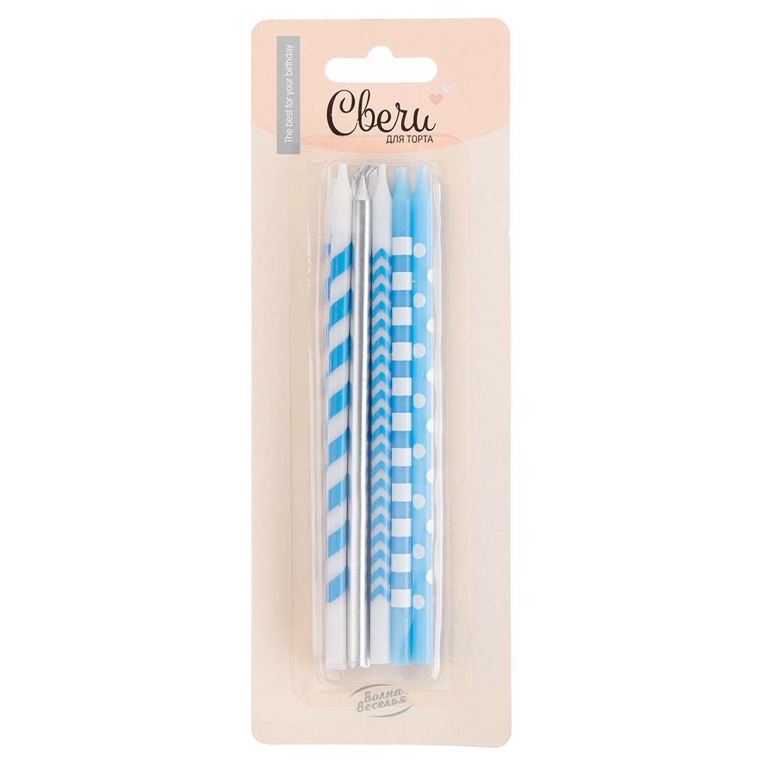 Свечи Точки и полосы, Голубой/Серебро, Металлик, 0,55*14,5 см, 10 шт.