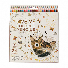 Карандаши 24-ти цв. Bruno Visconti "Love Me.Котики приносят счастье" трехгранные, заточен, карт.кор.