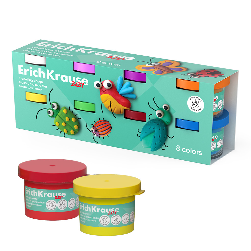 Тесто для лепки ErichKrause Baby с Алоэ Вера 8 цветов по 35 г (в коробке-рукаве 8 шт)