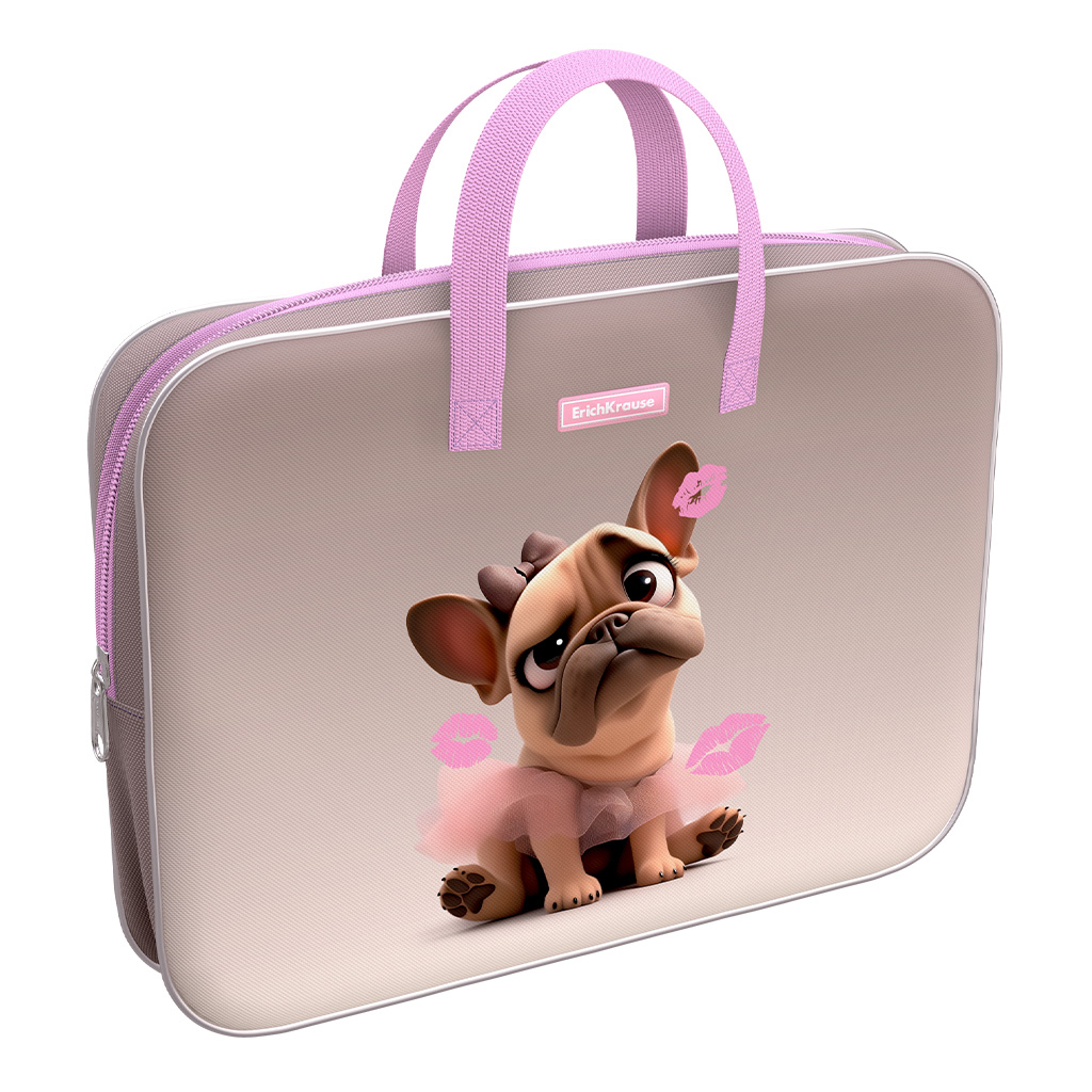 Папка А4+ Erich Krause с ручками "Frenchie" текстильная, молния, 290х70х360 мм, инд.уп,