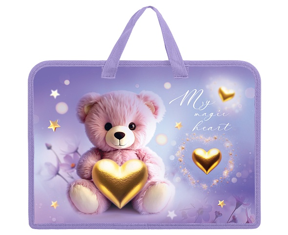Папка А4 ХАТБЕР с ручками "Лилу" для тетрадей, 1 отд., молния, 245х340х70мм., инд.уп.