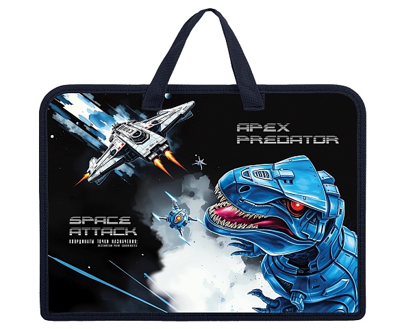 Папка А4 ХАТБЕР с ручками "Dino Space" для тетрадей, 1 отд., молния, 245х340х70мм., инд.уп.