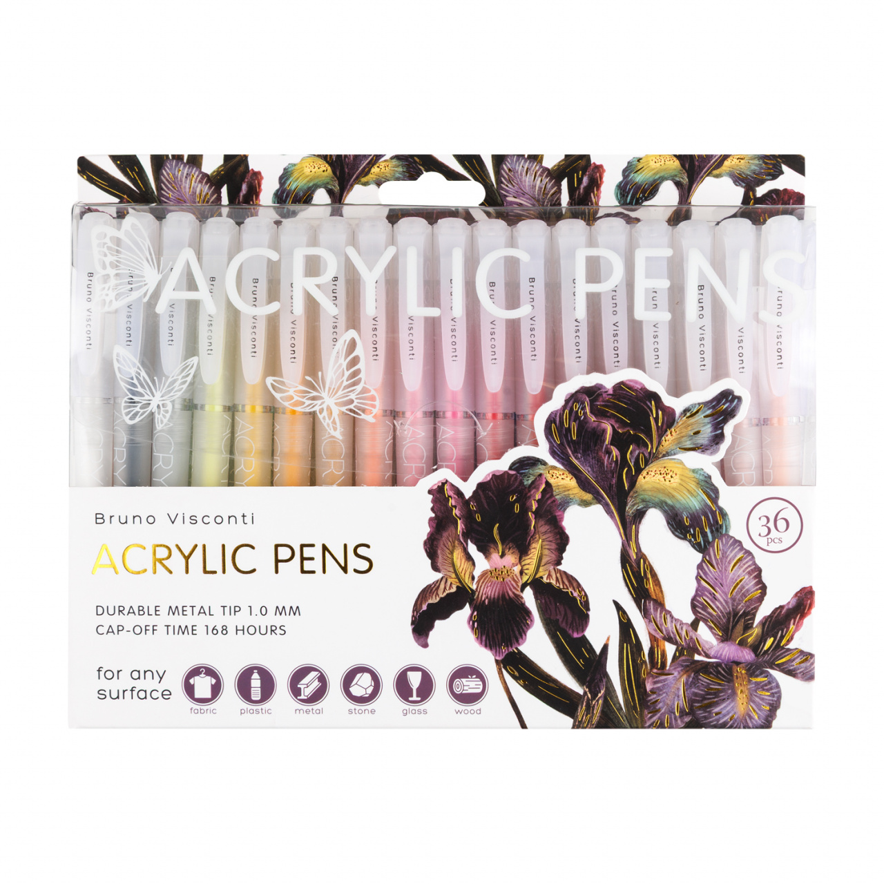Набор акриловых ручек Bruno Visconti 36цв. "Flora.Ирисы" 1,0мм, прозр.корп, пвх, европодвес
