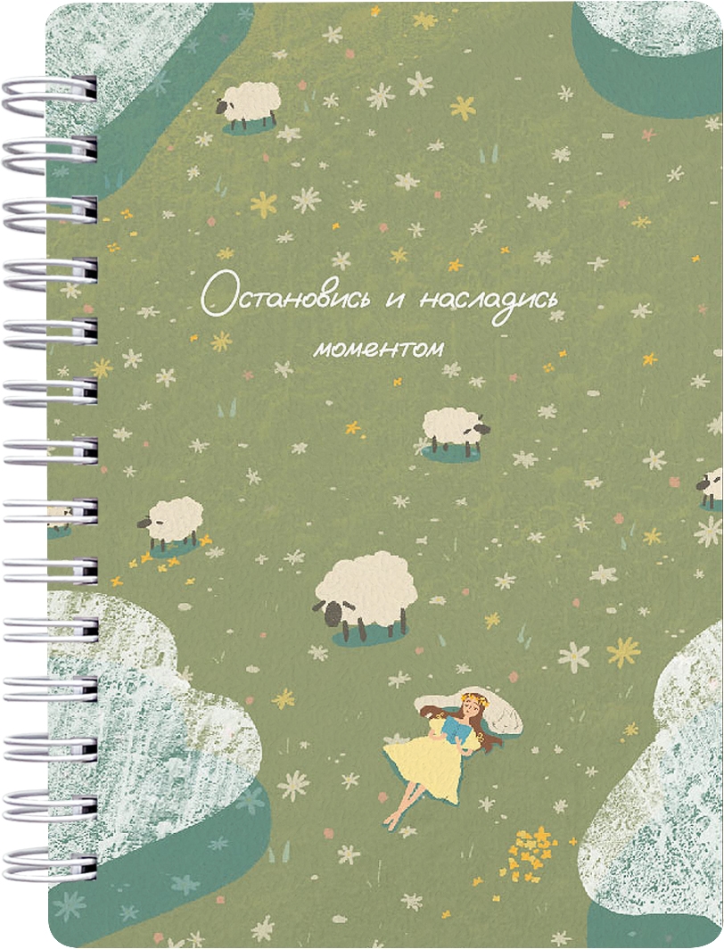Обложка: картон 320 г/м2, печать 4+4, микротекстурирование, ламинация, скругление углов. Спираль сбоку. Внутренний блок: офсетная печать, бумага 100% белизны, 65г/м2. Дизайн внутреннего блока "в клетку".