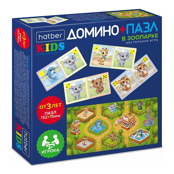 "Премиум" Kids" ИГРА настольно-печатная ДОМИНО + Пазл для детей-В зоопарке- в Бокс-упаковке