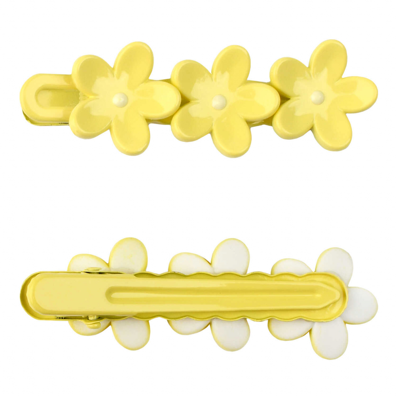 Заколка для волос «зажим» ЦВЕТОЧКИ (в наборе: 1шт., 6,4 см, черный металл, полиэфирная смола, цвет: жёлтый, подложка из мелованного картона + ПЭТ-пакет с европодвесом)