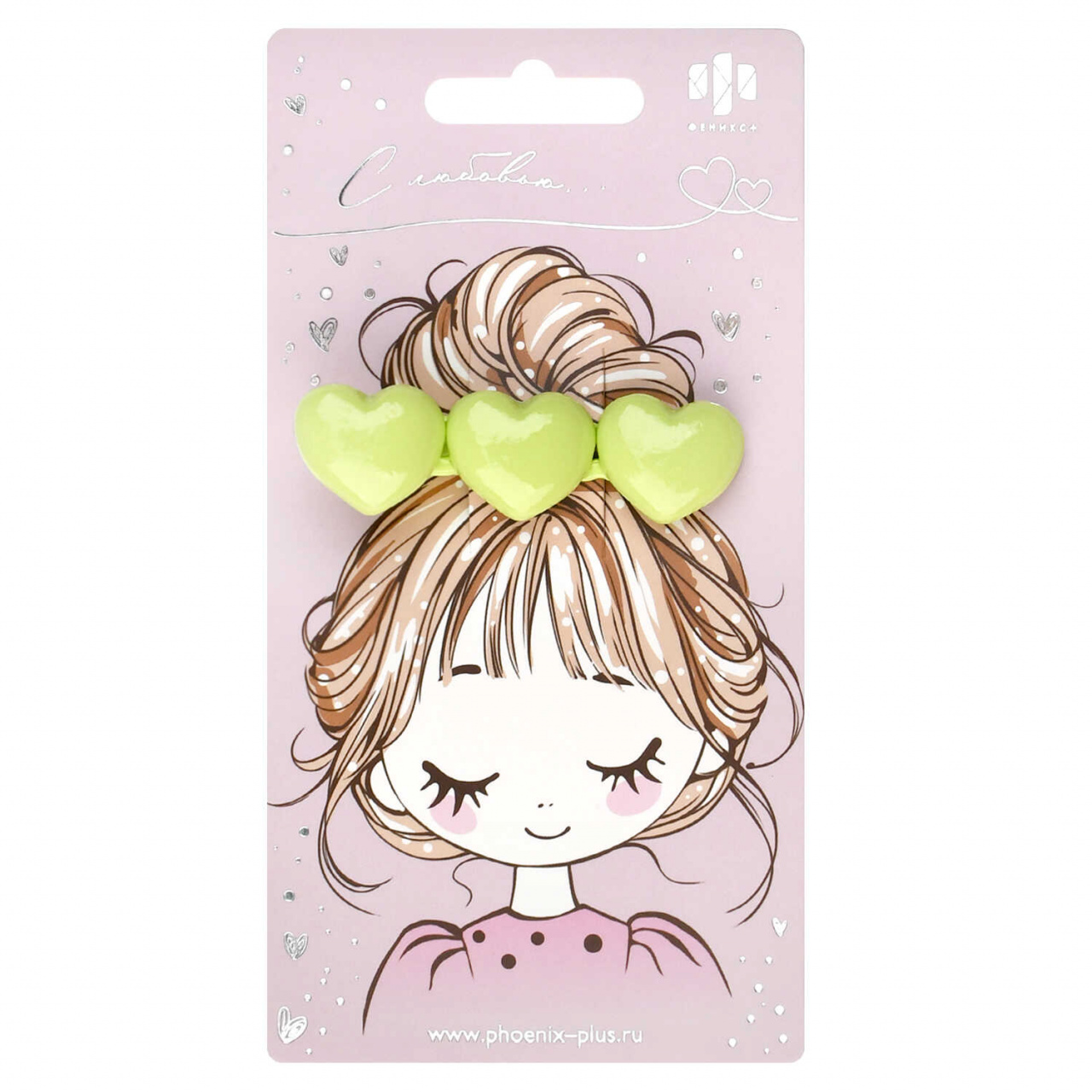 Заколка для волос ФЕНИКС "Сердечки" 6,5см., зеленая, металл, полиэф.смола, пакет, европодвес