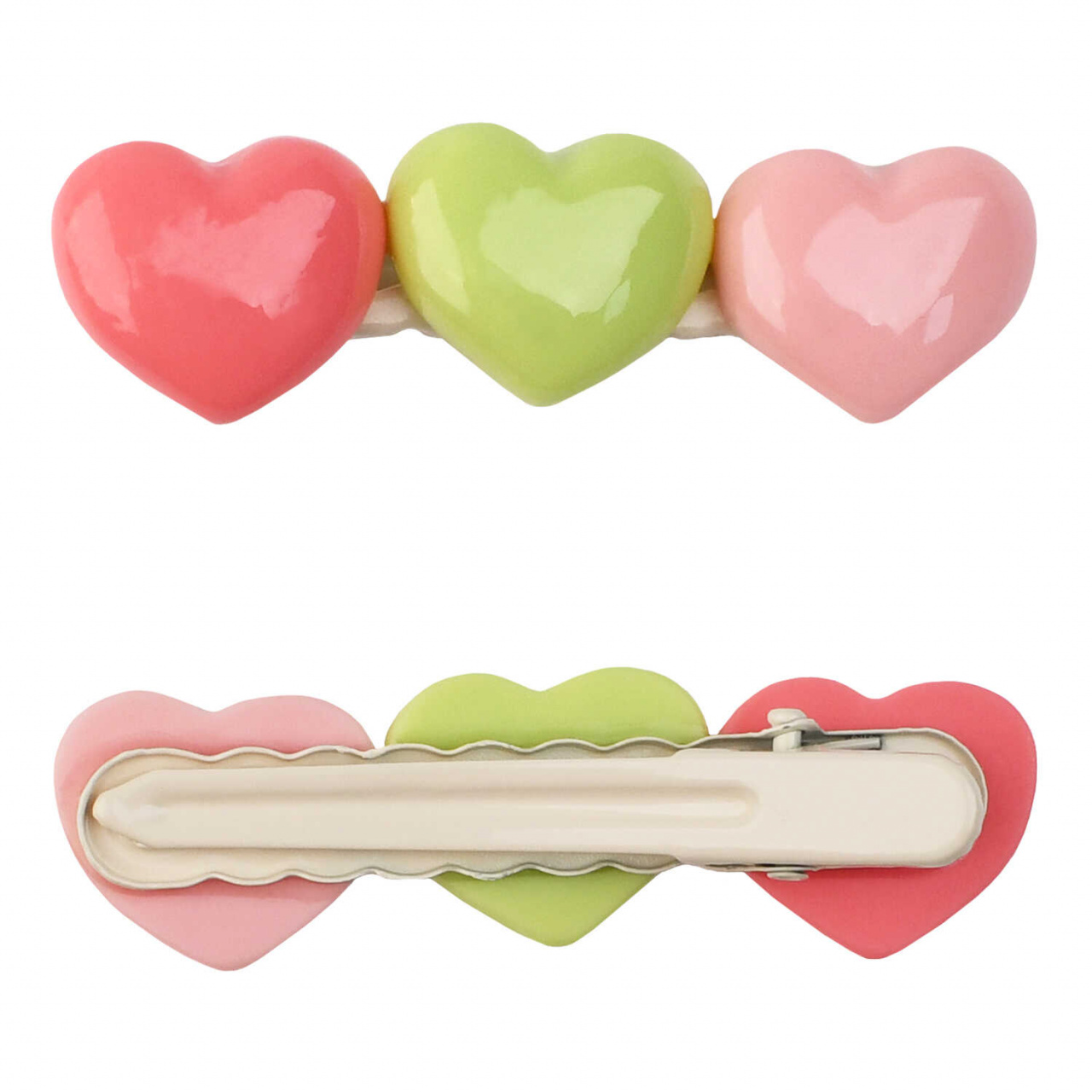 Заколка для волос «зажим», СЕРДЕЧКИ (в наборе: 1шт., 6,5 см, черный металл, полиэфирная смола, цвет: розовый, светло-зелёный, светло-розовый, подложка из мелованного картона + ПЭТ-пакет с европодвесом)