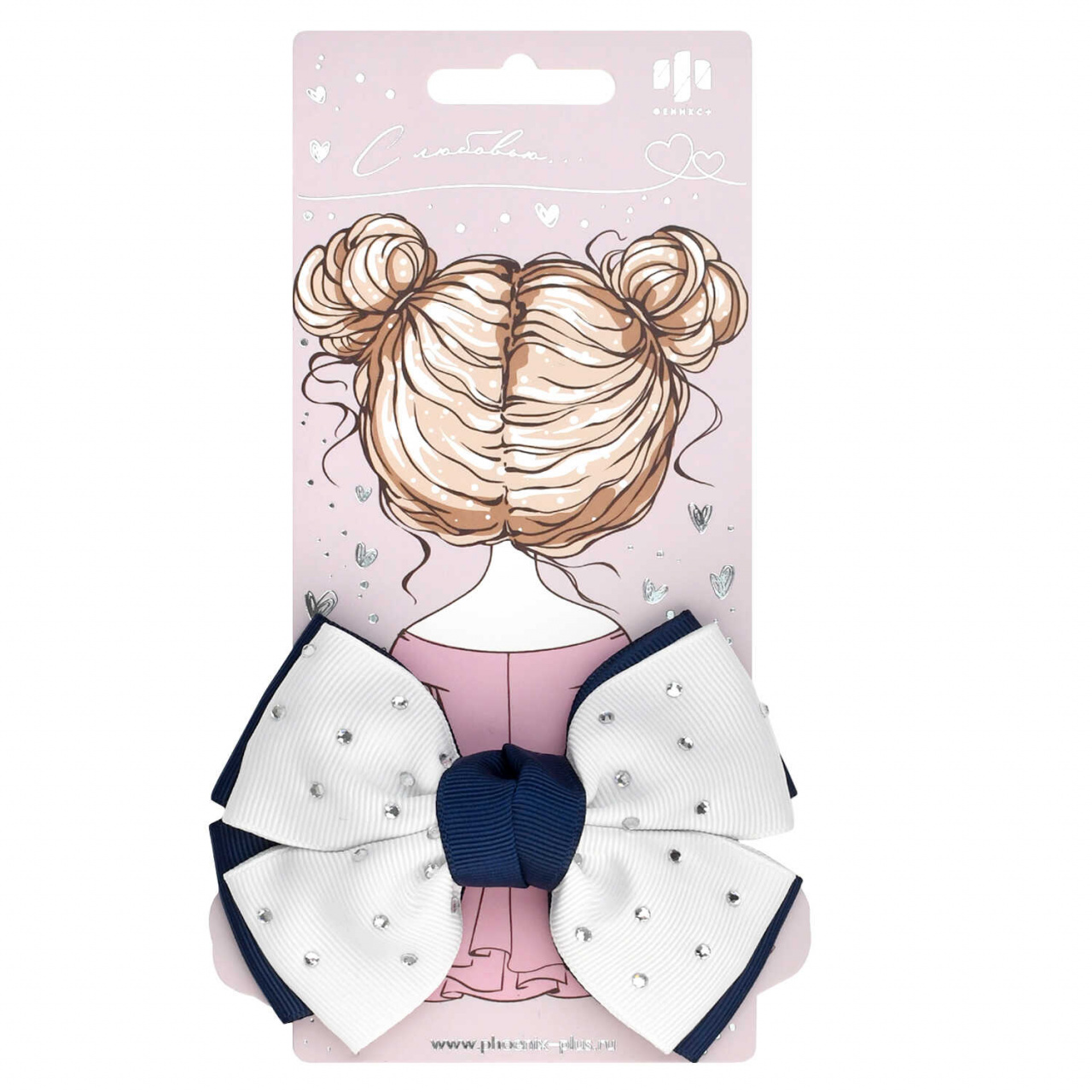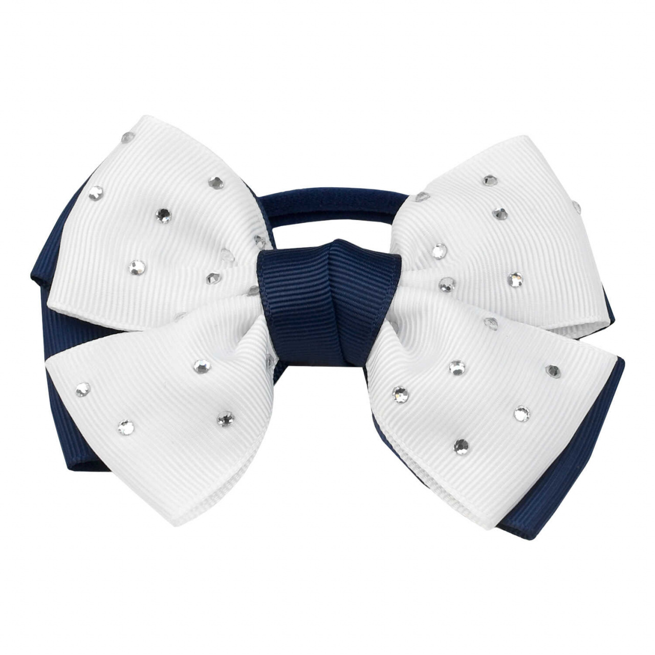 Резинка для волос БАНТ (в наборе: 1шт., б/р, размер банта 10 см, вулканизированная резина, полиэстер, цвет: белый, тёмно-синий, подложка из мелованного картона + ПЭТ-пакет с европодвесом)