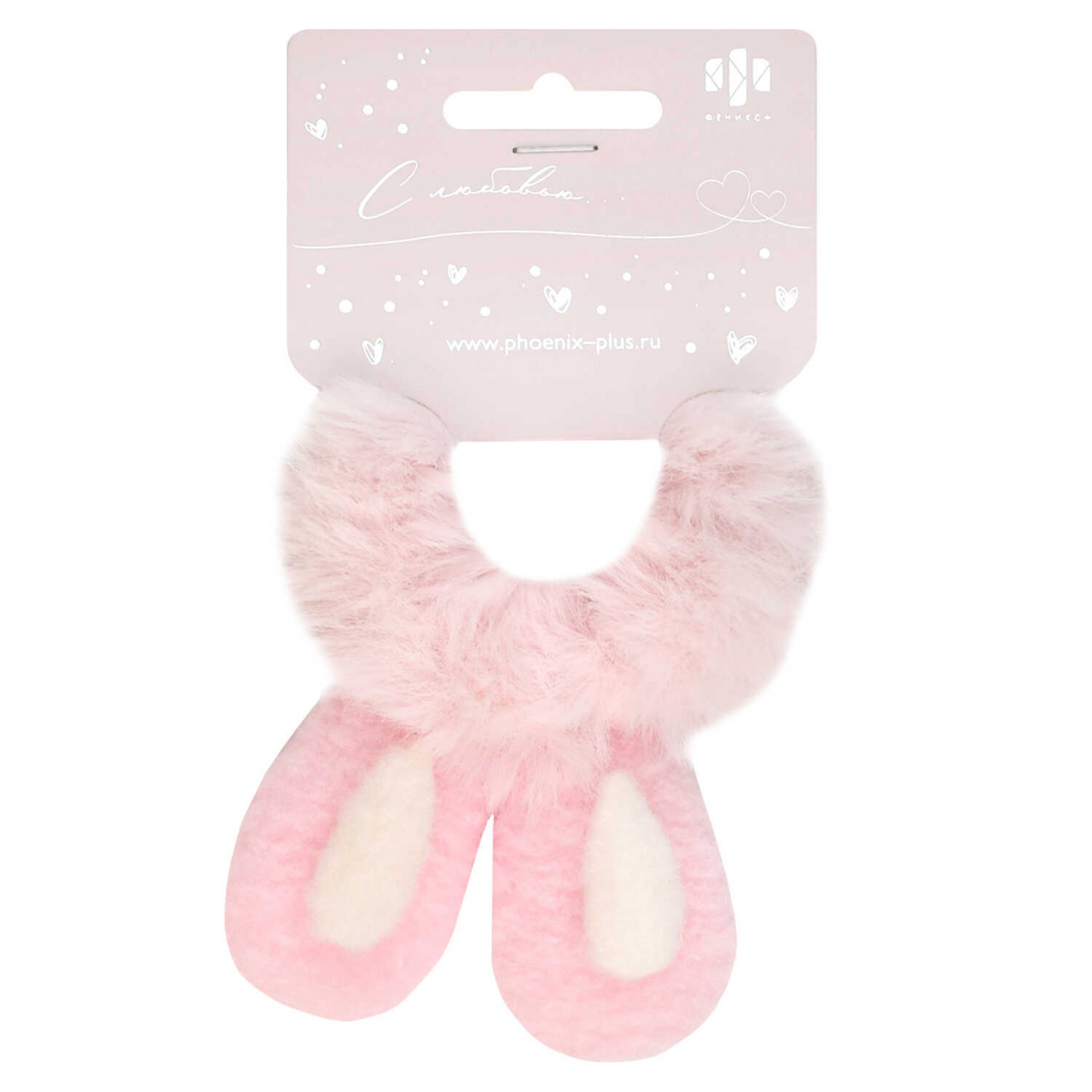 Резинка для волос ФЕНИКС "Пушистый зайка" розовая, вулкан.резина, полиэстер, пакет, европодвес