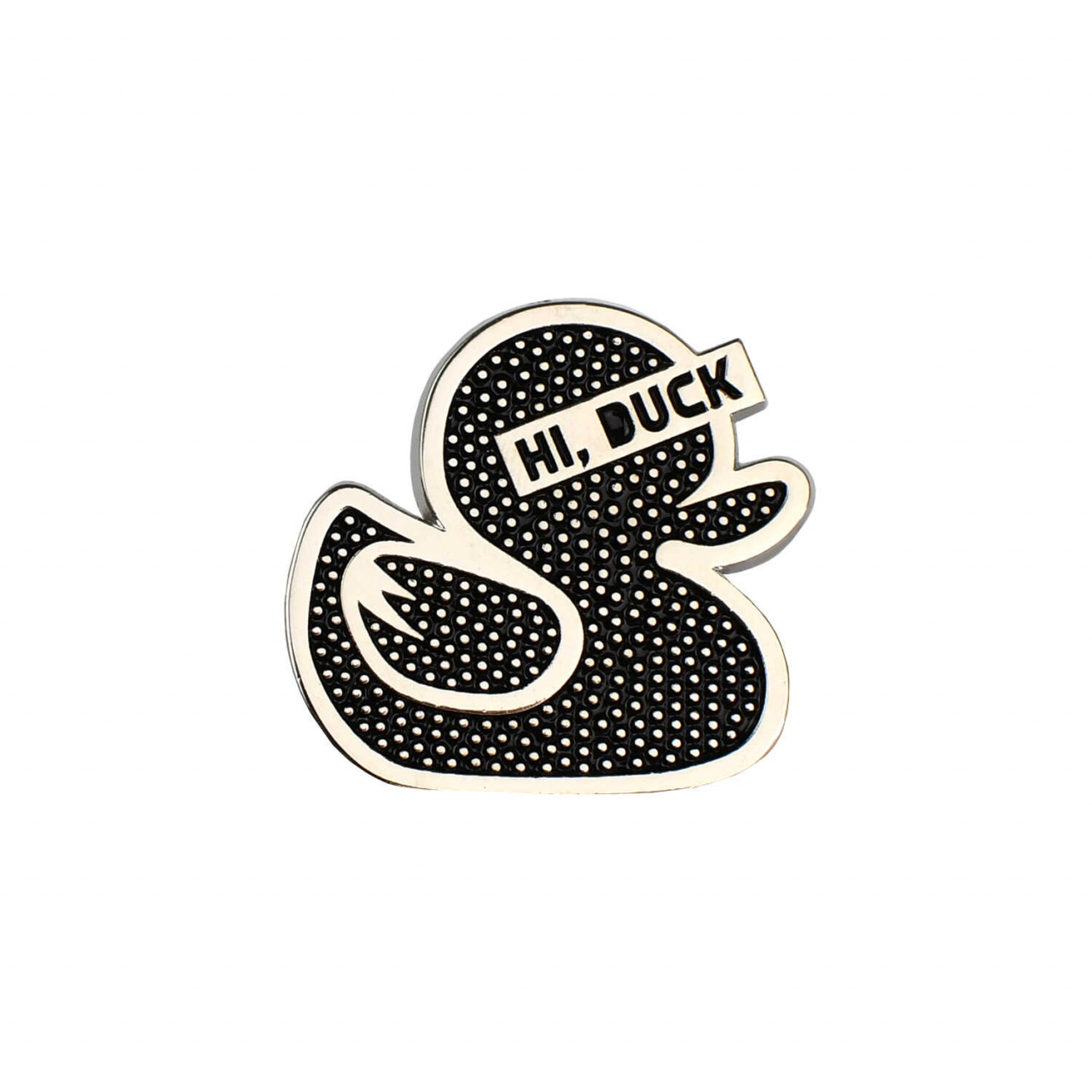 Значок-пин СЕРЕБРЯНЫЙ УТЕНОК ( 1 шт. в наборе; размер значка/-ов: 27х28 мм, материал значка/-ов: металл; способ изготовления: штамповка тип застёжки: цанга-бабочка (игла с заглушкой); цвет: чёрный; декор: эмаль холодная (мягкая); индивидуальная упаковка: подложка с европодвесом из мелованного картона + ПЭТ-пакет)