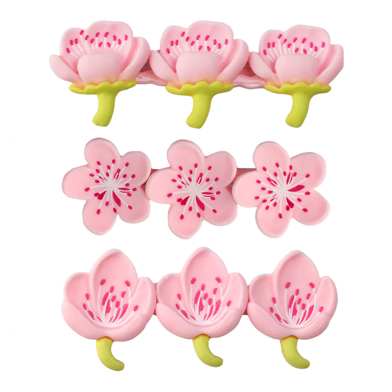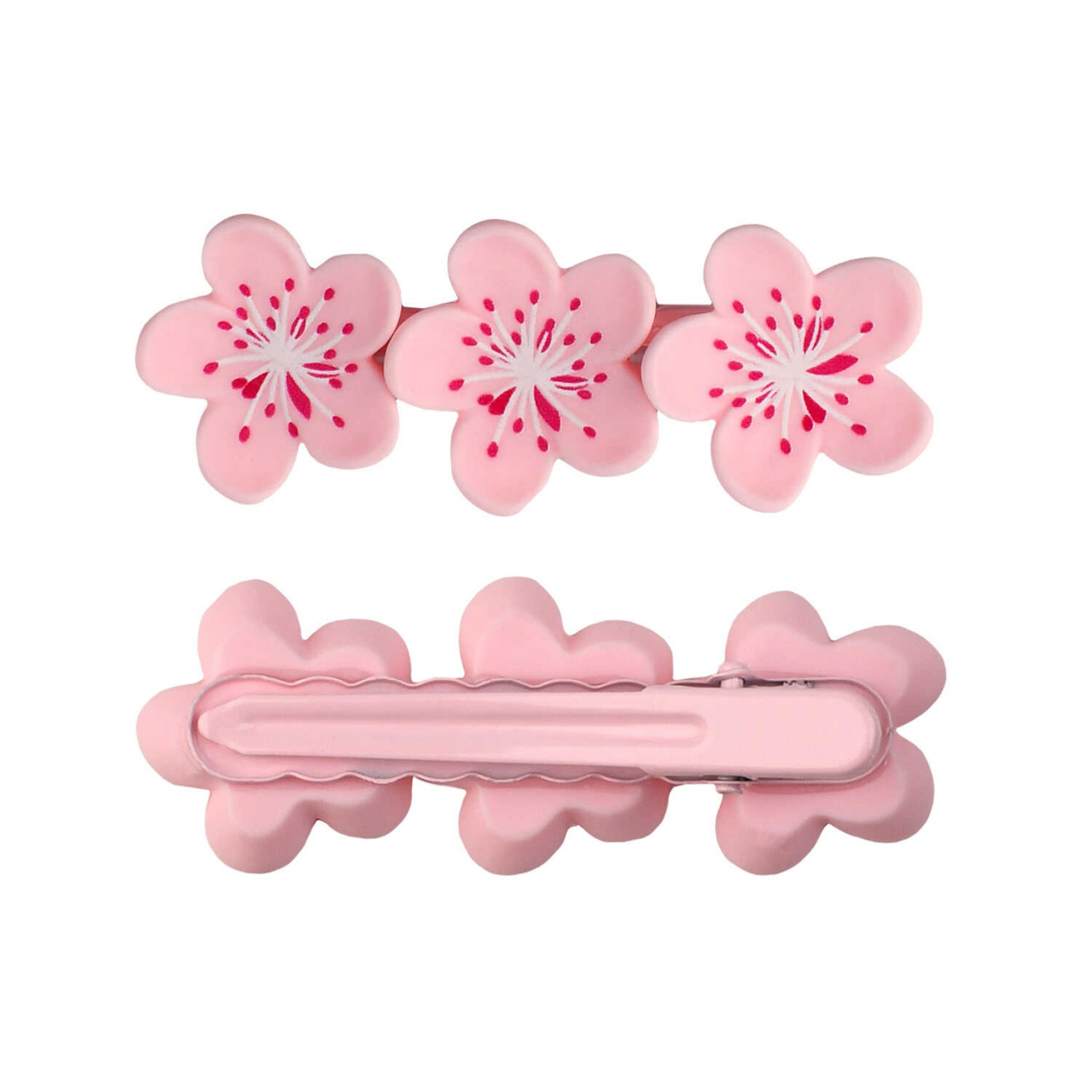 Набор заколок для волос «клик-клак», «зажим», глянцевые, ЦВЕТОЧКИ (в наборе: 5шт., 6,8 см, черный металл, полиэфирная смола, цвет: розовый, подложка из мелованного картона + ПЭТ-пакет с европодвесом)