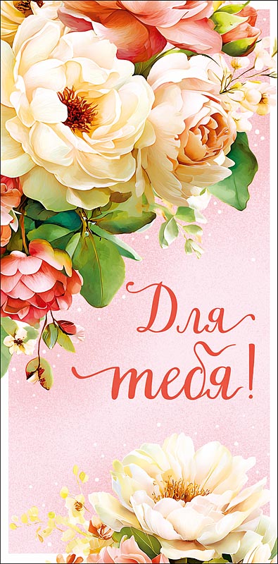 Конверт д/денег Арт Дизайн "Для Тебя.Цветы" вырубка, блестки, 83х167мм.