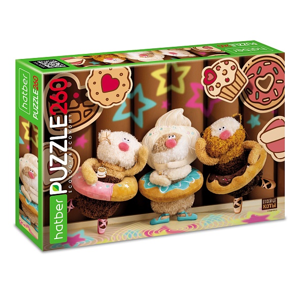 Пазлы 260 эл. ХАТБЕР "Эко.Кофейные коты" А4, 330х220мм.