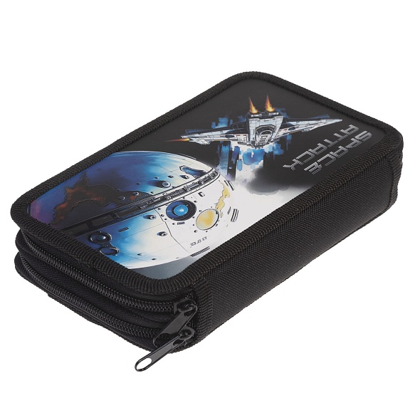 Пенал 190х110мм 2 отделения на молнии мат.ламин. 3D лак-Космический динозавр- с табл.умножения в индив.упак.