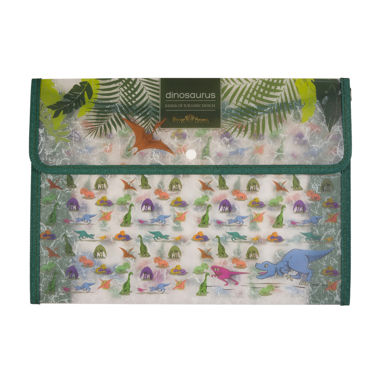 Папка-конверт А4 на кнопке Bruno Visconti "Динозаврики" полипропилен, текстил.окантовка