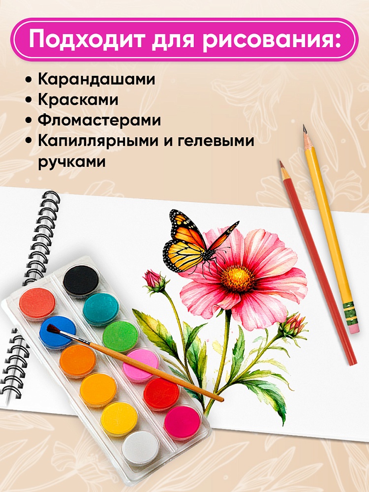 Альбом для рисования А4 40л. НЕЖНЫЕ ЦВЕТЫ - 23 2 диз. в сп., гребень, офсет