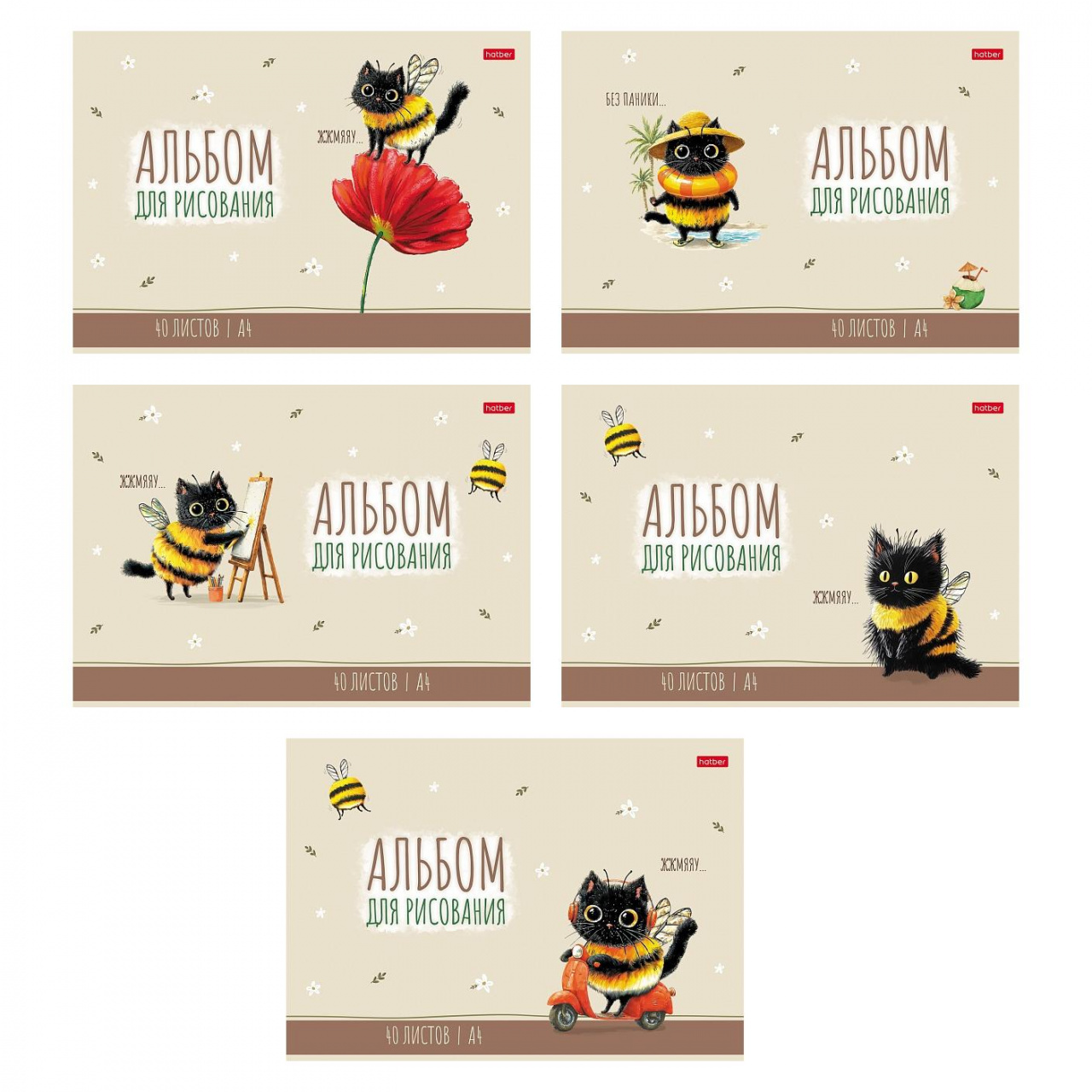 АЛЬБОМ для рисования 40л А4ф на скобе Обл. мел.картон 5 диз.в блоке серия -ЖЖ-МЯУ-