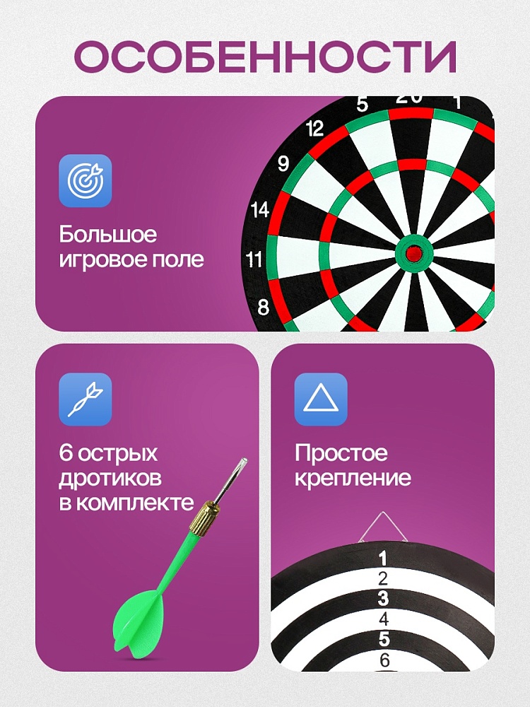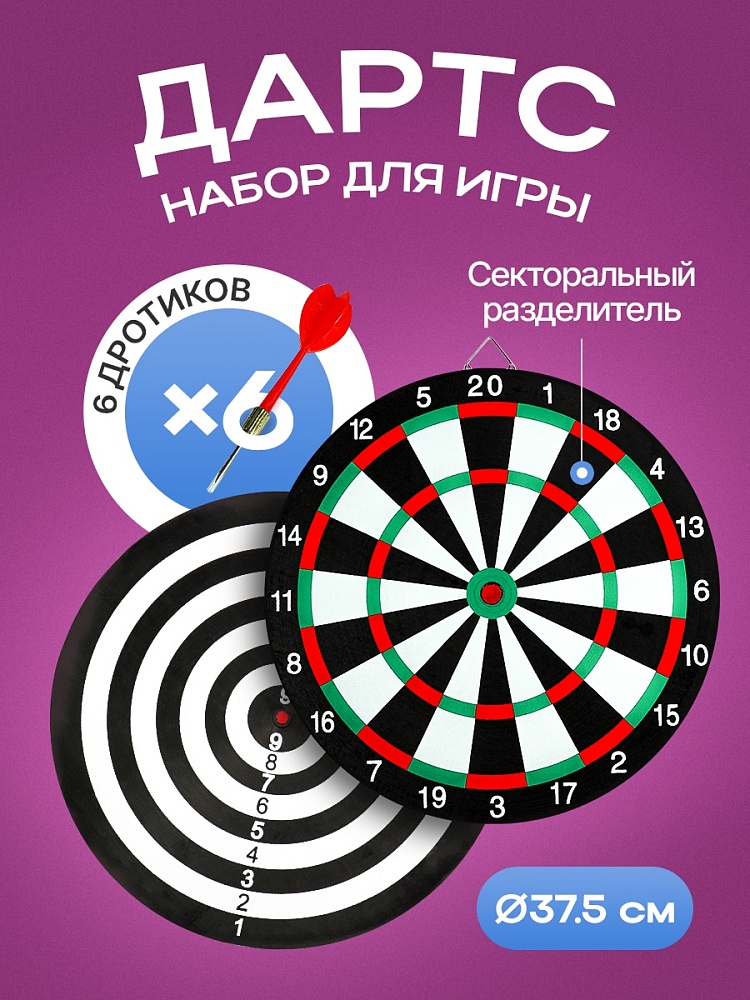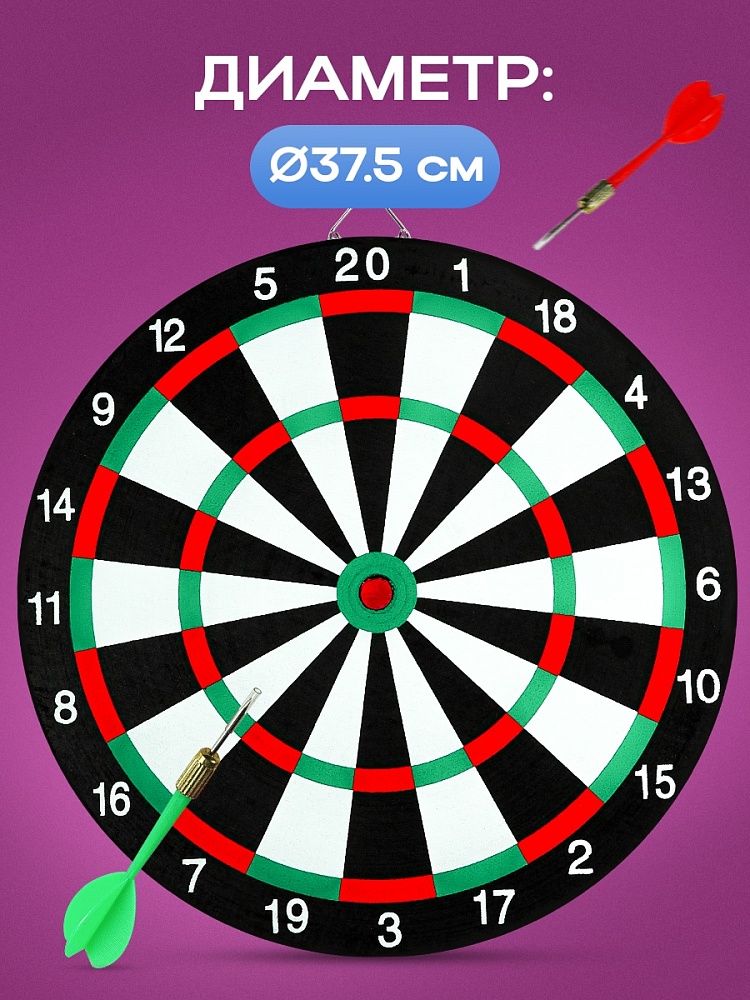 Игровой набор для взрослых и детей. Игра в дартс способствует развитию мелкой моторики, меткости и концентрации. Размер: 37,5 см.