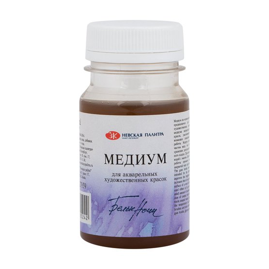 Медиум для акварели «Белые ночи» 100 мл сделан на основе водного раствора гуммиарабика и предназначен для работы с акварелью. При использовании медиума возрастает яркость и разносимость красок, время их высыхания, возможно появление блеска на поверхности работы. Можно использовать, как в чистом виде, так и разведенным в воде.
