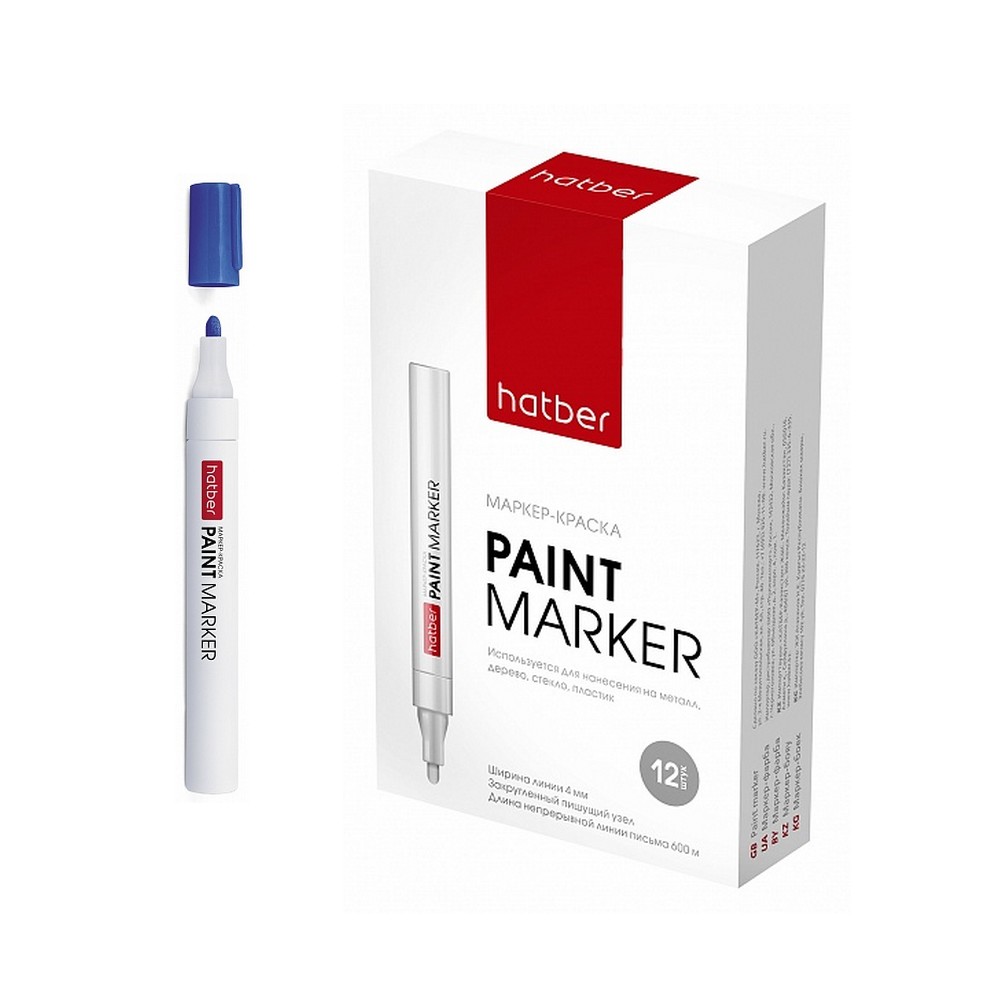 Маркер -краска Hatber металлический корпус закругленный пишущий узел толщина линии 1-4 мм Синяя 12шт. в карт. Мини-Дисплее