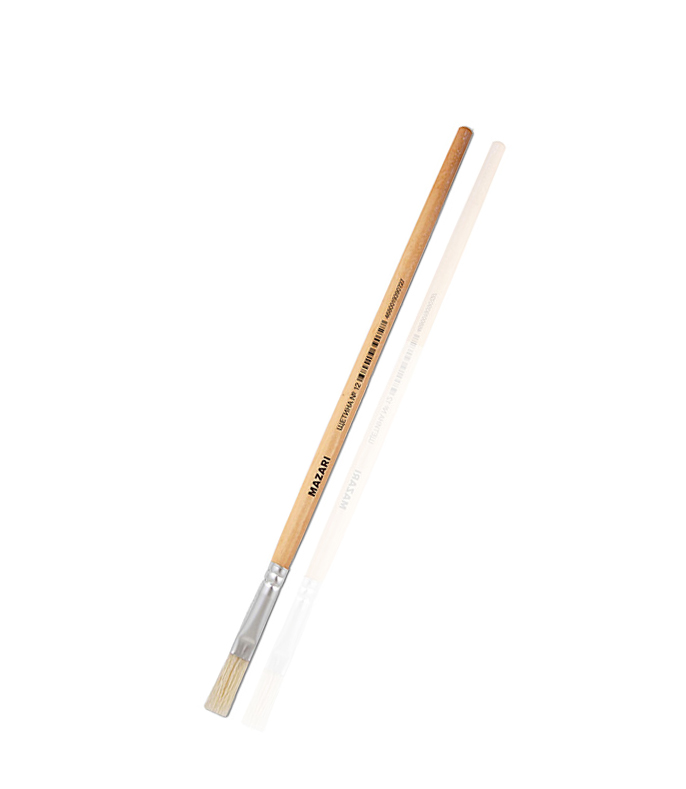 Кисть Mazari щетина №12 художественная, плоская, обойма обжимная, ручка деревянная