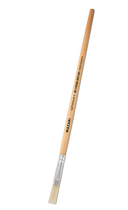 Кисть Mazari щетина №4 художественная, плоская, обойма обжимная, ручка деревянная