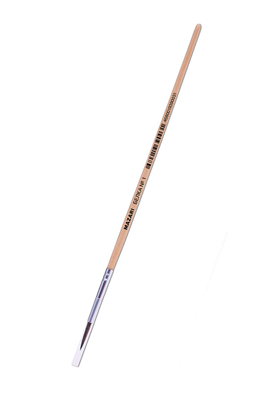 Кисть Mazari белка №1 художественная, круглая, обойма обжимная, ручка деревянная