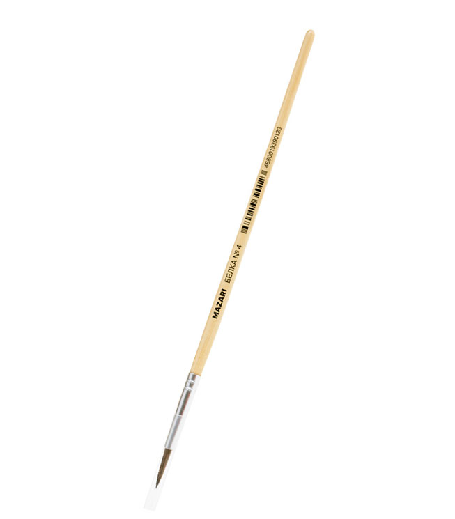 Кисть Mazari белка №4 художественная, круглая, обойма обжимная, ручка деревянная
