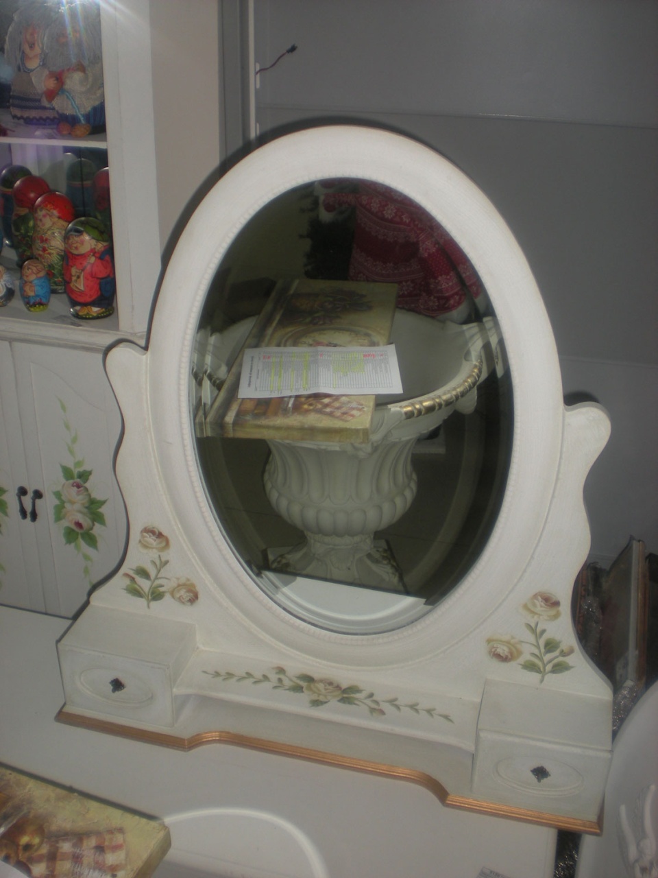 Зеркало с комодиком, овальное, 80х55см, дерево