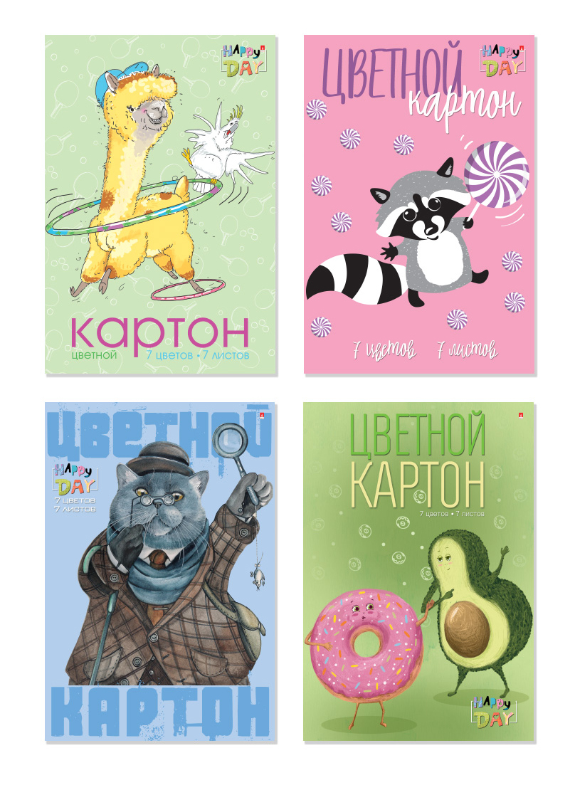 11-407-126 НАБОР ЦВЕТНОГО КАРТОНА А4. 7 Л. 7 ЦВ."МУЛЬТИКИ" 4 ВИДА