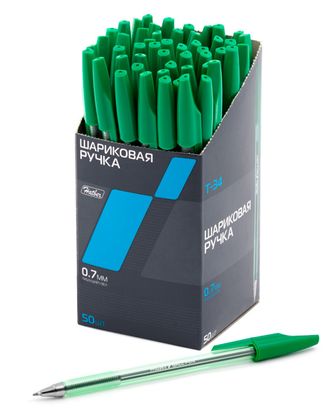 Ручка шариковая ХАТБЕР T-34 зеленая, колпачок, клип, 0,7мм.