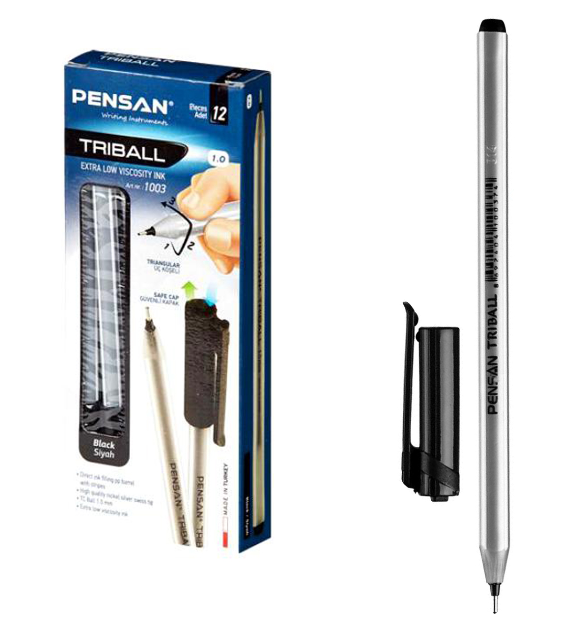 Ручка шариковая Pensan "Triball" черная, трехгр., 1мм.