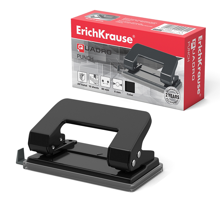 Дырокол ERICH KRAUSE на 10л. "Quadro" ассорти